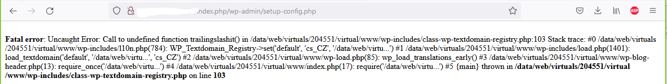 Dobrý den, prosím při instalaci WP (zkoušeny různé verze, aktuálně 6.1.1) se mi stále objevuje následující chyba: