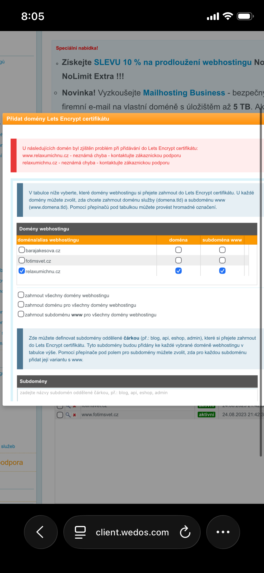Vyřešeno263 zhlédnutíWebhosting#Let’sEncryptcertifikát