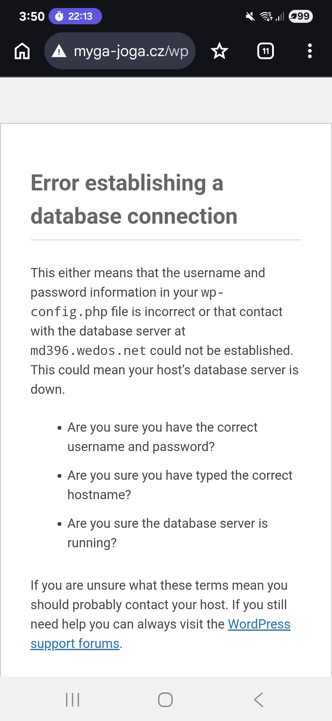 chybová hláška „Během připojování k databázovému serveru došlo k chybě“ značí problém WordPressu při spojení s databází.