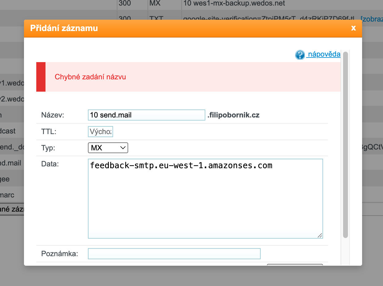 DNS MX záznam – nelze vytvořit