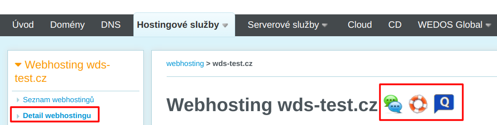 Přímý kontakt (chat/formulář) je dostupný přes ikony v detailu služby.