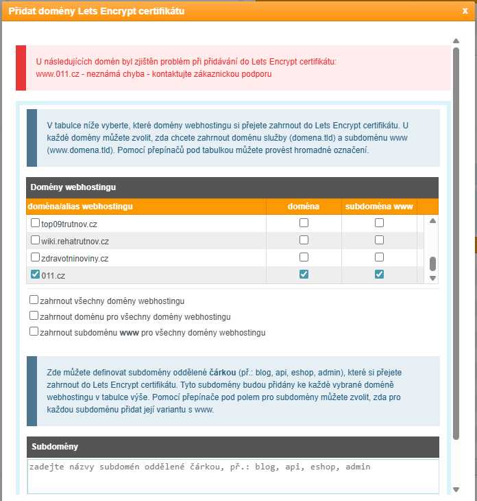 Dobrý den, nejde mi nastavit https na doménu 011.cz