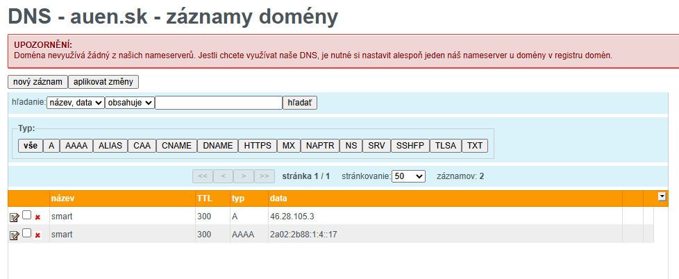 už dva dni som riadne zmeny v DNS či NS nerobil, zaznamy su ok, čo som pozeral aj DNS lookup