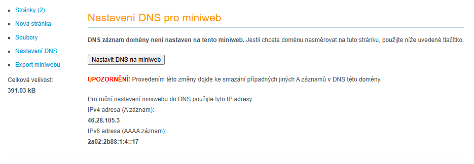Čo treba nastaviť ešte? Už mi nič ďalšie nenapadá. Jedine, že miniweb funguje len vtedy, ak hlavnu domenu domena.sk na resolvovat wedos, v opačnom pripade miniweb nebude fungovat. Ako to je?