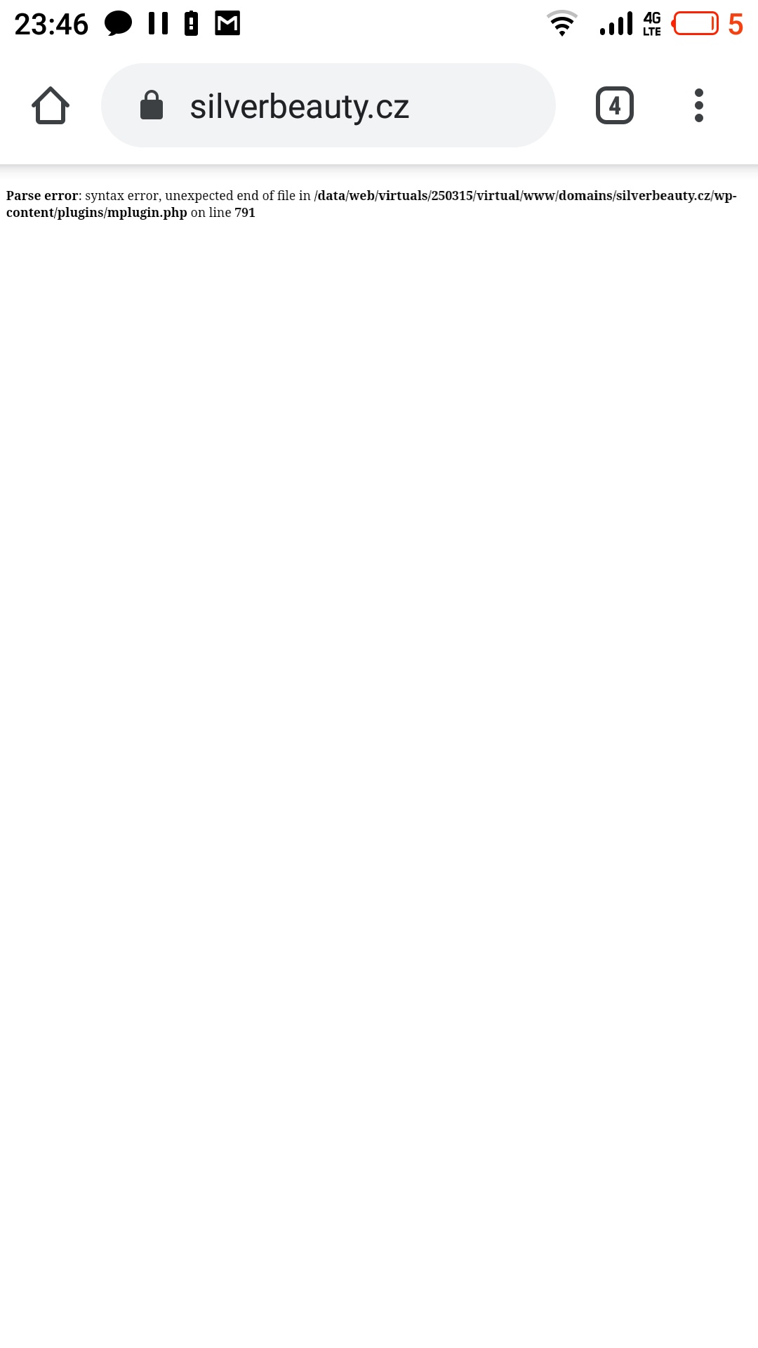 To by vypadalo na selhání pluginu mplugin.php, pokud takový používáte, nebo na napadený web.