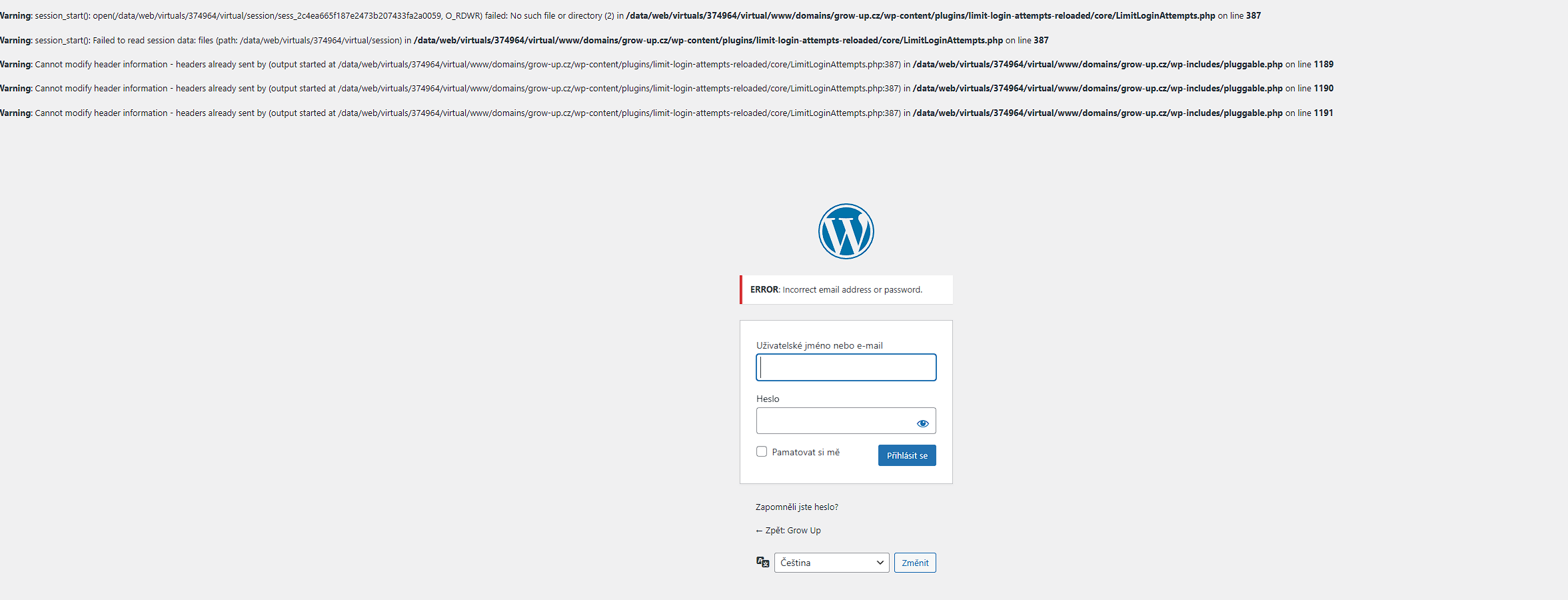 s nejvyšší pravděpodobností Vám chybí složka tmp kterou plugin limit-login-attempts vyžaduje. Ujistěte se prosím, že tuto složku máte v kořenovém adresáři jak je popsáno v návodu zde.