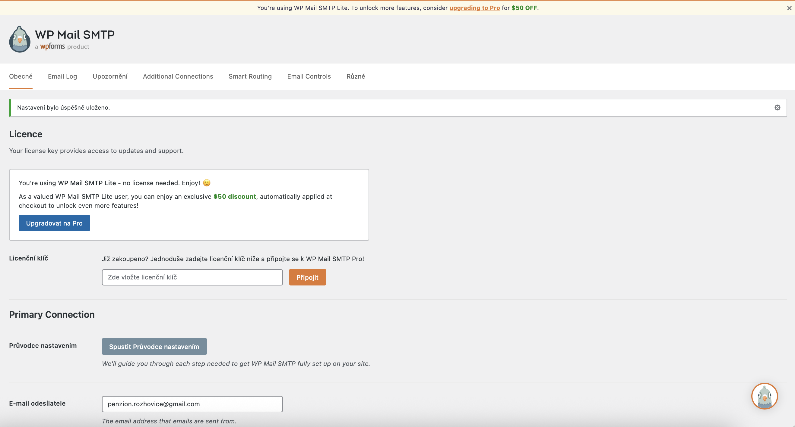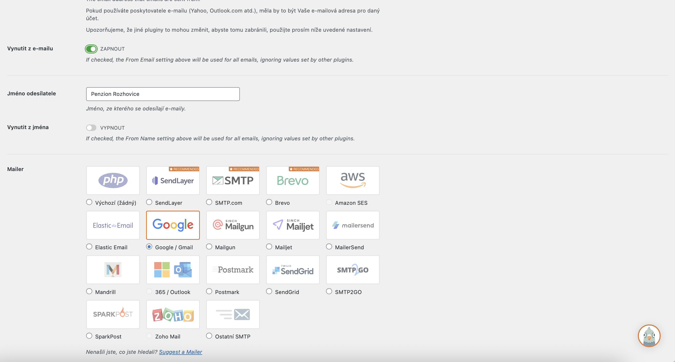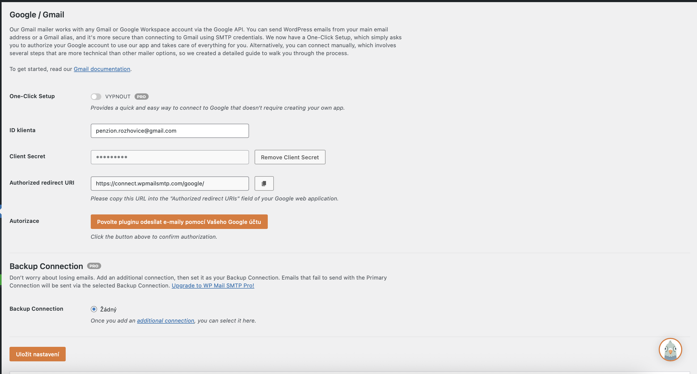 bohužel nám na webu www.ubytovani-rozhovice.cz nefunguje odesílání formulářů. Nainstaloval jsem i plugin WP Mail SMTP, vše nastavil, ale po kliknutí na tlačítko: Povolte pluginu odesílat e-maily pomocí Vašeho Google účtu