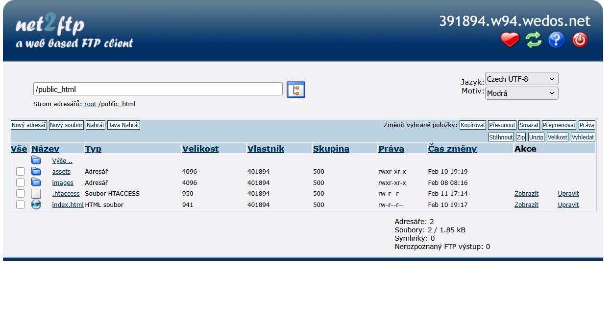 Webové soubory tedy musíte umístit do www/domains/keilbergrelax.com