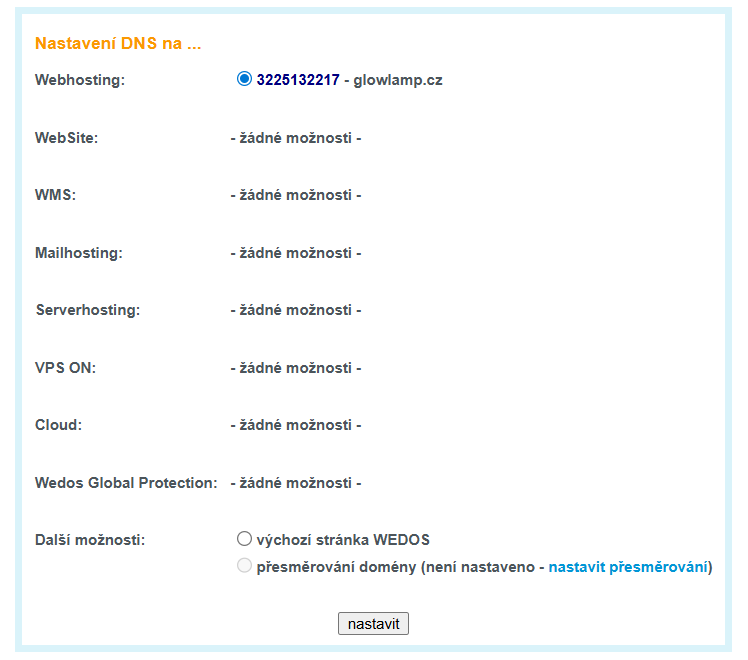 Nemám tam žádné možnosti. Zobrazí se mi vychozí stránka wedos.