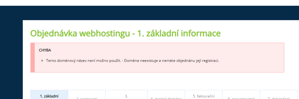to objednáváte znovu i Webhosting. Ten vy nepotřebujete, přejmenujete si ten glowlamp.cz. Samotnou doménu comabox.cz si registrujete přímo zde.