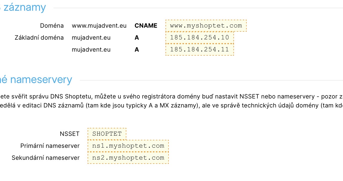 pro nasměrování domény na webhosting od Shoptetu je třeba buď nastavení DNS záznamů nebo DNS serverů. O jakou přesně doménu se prosím jedná?