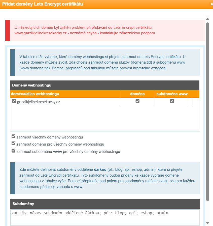 Dobrý den, po přidání domény Let´s Encrypt certifikátu se mi objevilo toto upozornění Prosím o radu jak postupovat.