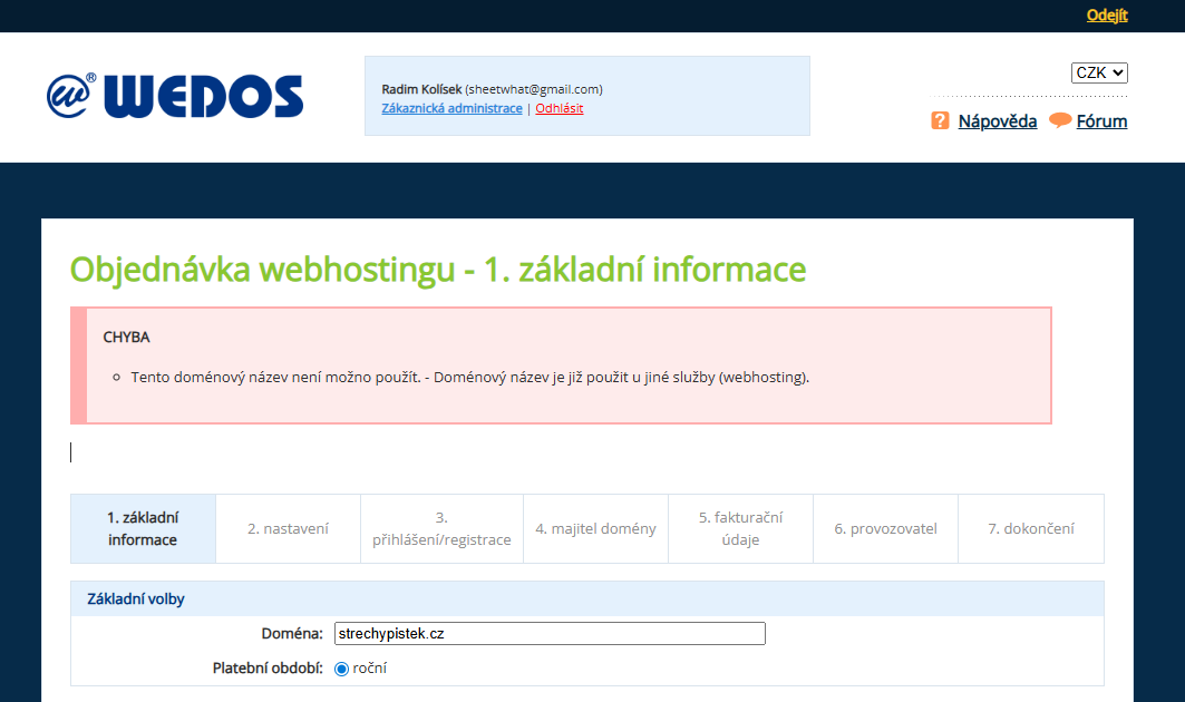 • Tento doménový název není možno použít. – Doménový název je již použit u jiné služby (webhosting).
