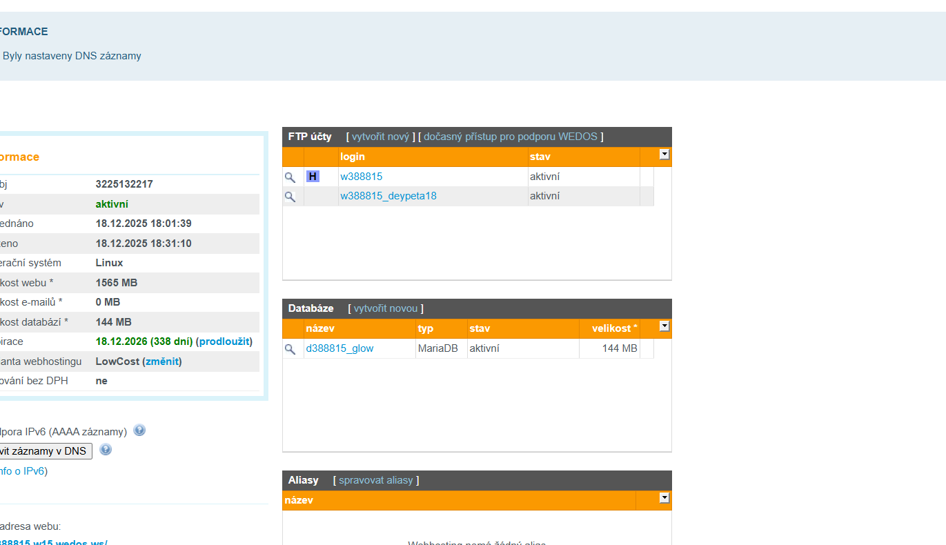 A ted se nedostanu do wp-admin a ve wedosu nevidím svůj website.